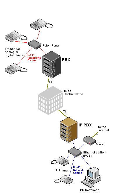 Prvi je da se postojeće PBX centrale nadograde s IP modulima dok je druga kompletna zamjena postojećih klasičnih PBX centrala i primjena VoIP centrale.